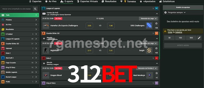 O 312bet oferece uma grande seleção de opções de apostas em e-sports com probabilidades competitivas
